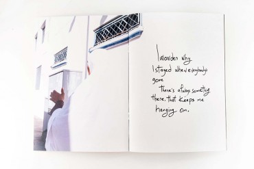 The zine showcases photographs taken by the author in his hometown in Morocco, accompanied by poems reflecting his psychological struggles and the challenges of being in his early 30s. A captivating mix of heartfelt portraits and absurd humorous situations on the streets, along with his diary entries and still-lifes, created a unique impression of the daily life of a person coping with personal crisis